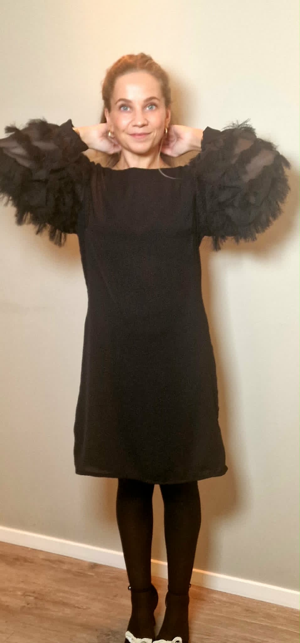 Modell er 153cm og hun bruker XS